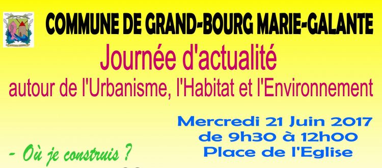 La commune de Grand-bourg de Marie-Galante organise sa journée de l’actualité autour de l’habitat, l’environnement et de l’urbanisme le mercredi  21 juin 2017.