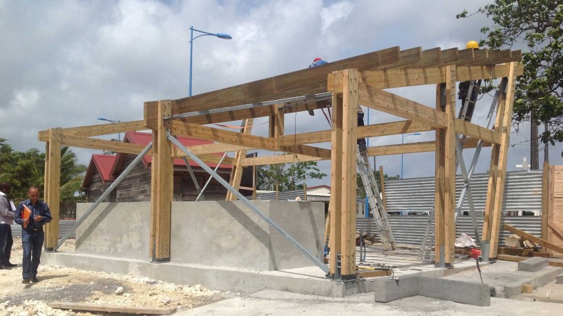 Construction d’une halle aux poissons avec 3 espaces de vente.L’installation comprend aussi un espace de stockage de glace